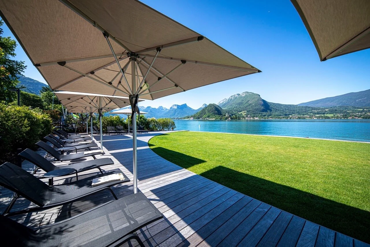 Idéal sur les grandes places, les terrasses d’hôtel et autour des piscines, il s’ouvre et se ferme facilement grâce au système breveté de coulisse et levier de serrage.
