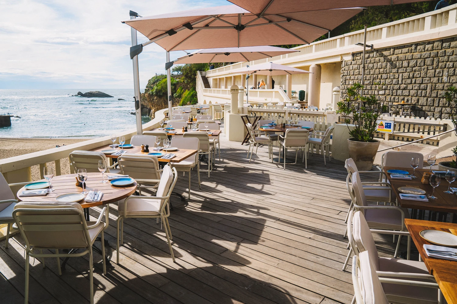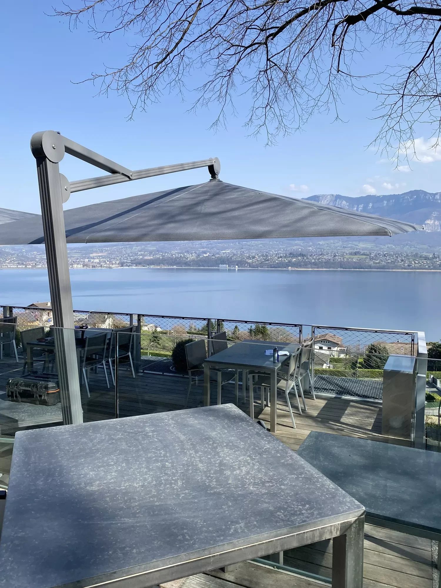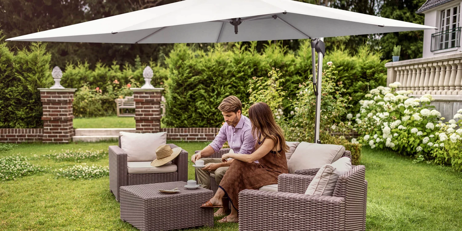 Le parasol à pied déporté Fortano® associe le confort de l’ombrage à la robustesse.