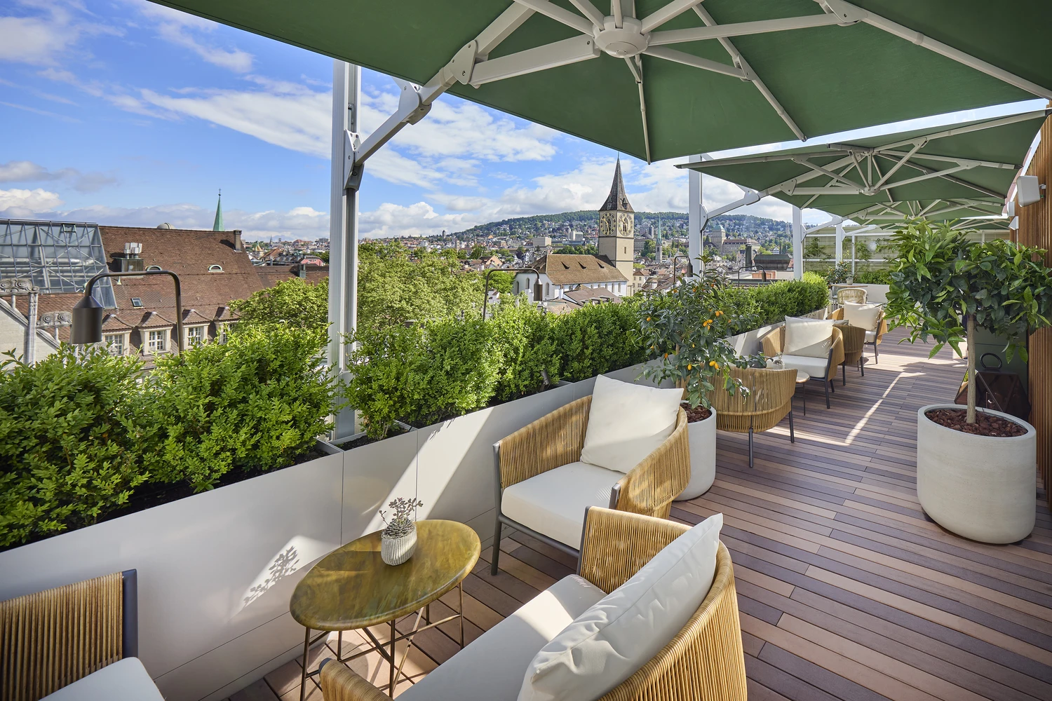 Le Sombrano® S+ est le seul parasol à bras libre qui s’ouvre automatiquement en tournant la manivelle et qui s’oriente à l’horizontale.